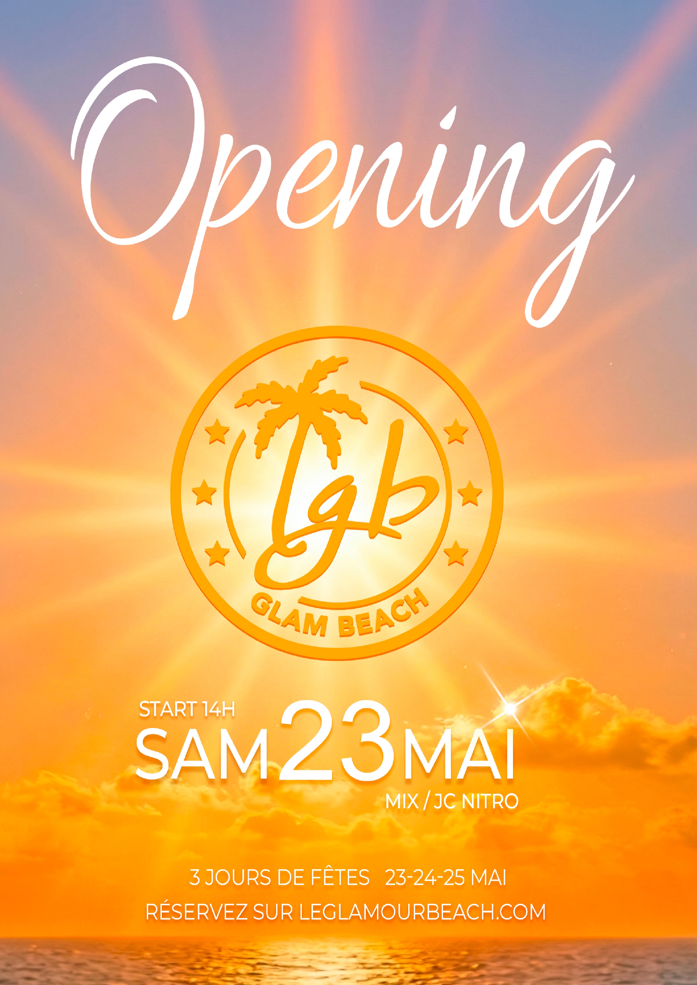 Dans un cadre des plus tendance, festif et coquin, le Glamour Beach vous ouvre ses portes de 14h à 19h. Vous y découvrirez un spacieux Jacuzzi à débordement entouré de bains de soleil accompagné de votre cocktail préféré. Un espace dance-floor où sont déversés plus de 2000 litres de Mousse par jour vous feront vivre une aprés-midi féerique. Plus de 100 cadeaux et goodies vous sont offerts chaques jours aux rythmes de la musique. Soleil, Musique, Jacuzzi Place à la bonne humeur, à la séduction et aux plaisirs charnels. De nombreux DJ seront présents pour vous faire danser et vibrer tout au long de la saison comme Laura Vaî, Anna Vladimir, Joker, B-no, YoKaN, JC NITRO, et bien d'autres encore.